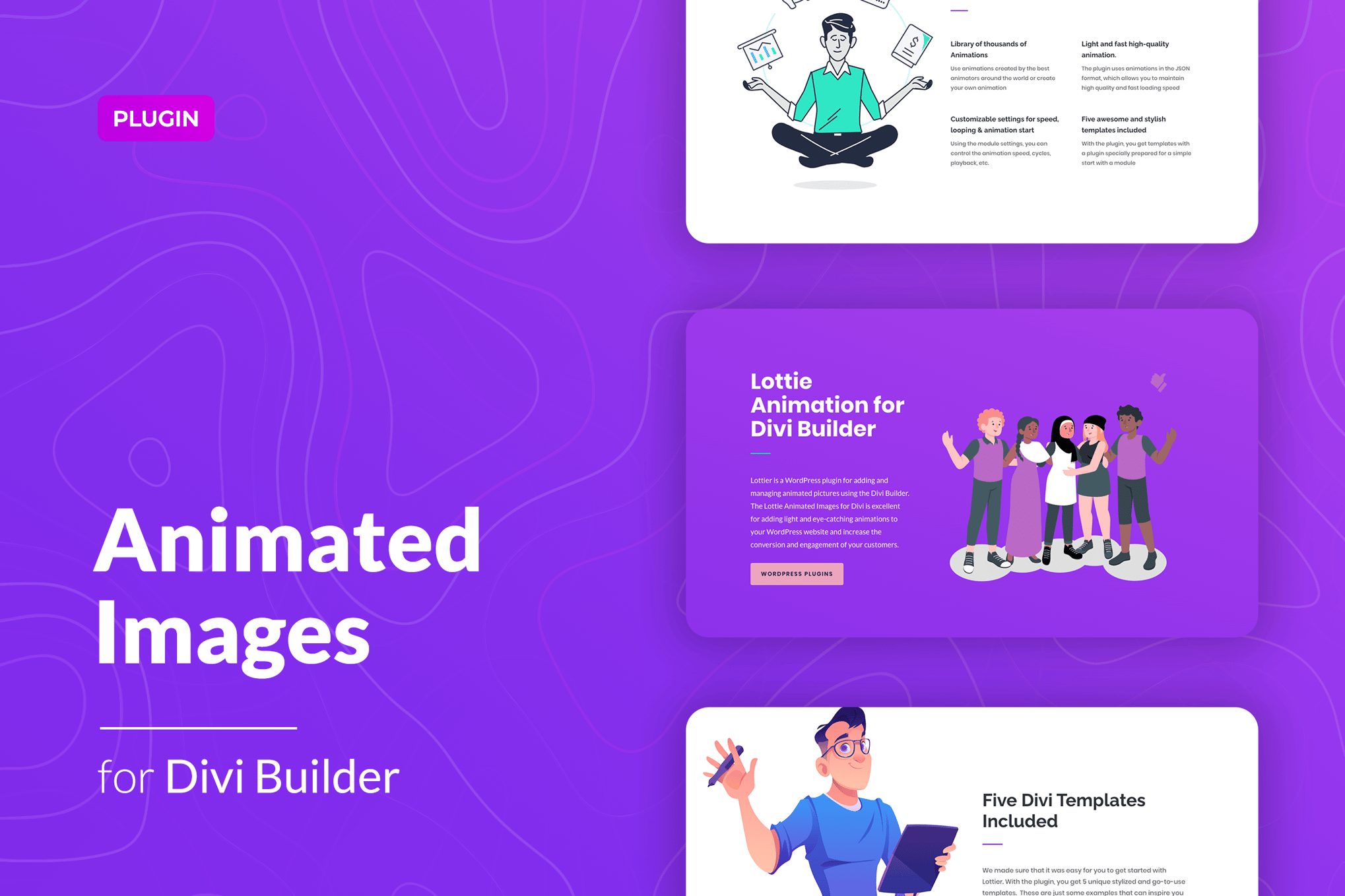 LottieFiles is a WordPress plugin for adding unique and beautiful animation using the Divi builder. The Lottie is an excellent tool for light and eye-catching animations to your WordPress website that help to increase the conversion and engagement of your customers.This plugin uses the library of JSON animations from lottiefiles.com. There is a wide range of exciting animations made by professional designers from around the world. You can buy the animation that suits your site or use different variations for free in a few clicks. Such a product can improve any type of WordPress site and design, whether it be Blog, Portfolio, Corporate Website, Creative Agency, eCommerce Project, Personal CV, a Restaurant, or Magazine.We made sure that it was easy for you to get started with Lottie. With the plugin, you get 5 unique stylized and go-to-use templates. These are just some examples that can inspire you to create your style. It provides you a quick start in a few clicks.The plugin has straightforward but powerful settings. Inside the Divi, you can configure everything about the size, position, animation speed, looping, or playback mode. Besides, you can edit the colors of the layers inside the animation, for this on the animation library website there is a very functional editor of animated pictures online. And of course, you can independently use to draw, load, and use your unique animation.This Lottie represents the future of web animations because it uses the SVG and JSON code to animate SVG paths & shapes. An animation image is thinner than any static image(jpg or png), and several times smaller than an animated image or video. Also, the loading of such an animation occurs instantly without blur or pixelation.Features of the LottieFiles for DiviLottie library with over a thousand free animationsCustom animation optionsIncluded 5 Lottier templatesThree-component block layoutCustomizable fonts, colors, borders, backgrounds, gradient, etc.Online animation styles editorResponsiveness settingsWorks well with all WordPress themes built on DiviPerfect for Divi 4.5 and higherSeo FriendlyIncluded pot file for quick translation on any languagePerfect for RTL directionFast and smooth installingTested and compatible up to WordPress 5+Lightweight and FastAll major browsers supported Chrome, Firefox, Safari, Opera, and EdgeEasy to use and customize with modern User InterfaceInstallation Guide and detailed Users ManualSix months Included Support for CodeCanyon buyersLottie for Divi exceptionally compatible with all modern browsers. It does not matter which browser users view your site: Chrome, Firefox, Opera, Safari, or Edge. Everything will look great on all devices and in all browsers.The plugin installation takes only a few seconds. Also, you do not need to make any additional settings. The plugin is ready to work immediately after installation – you only need to install and activate it in WordPress.